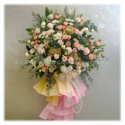 AB120 清新粉綠高架花籃一個