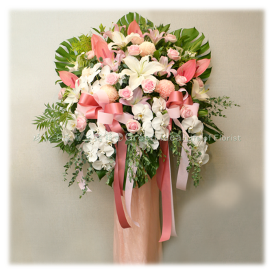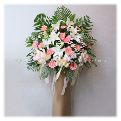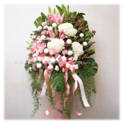 A005 典雅粉白高架花籃一個
