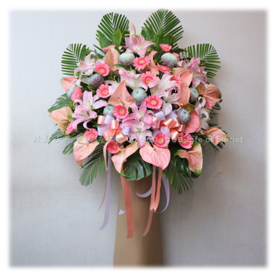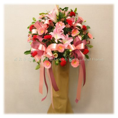 AB121 柔映粉韻高架花籃一個