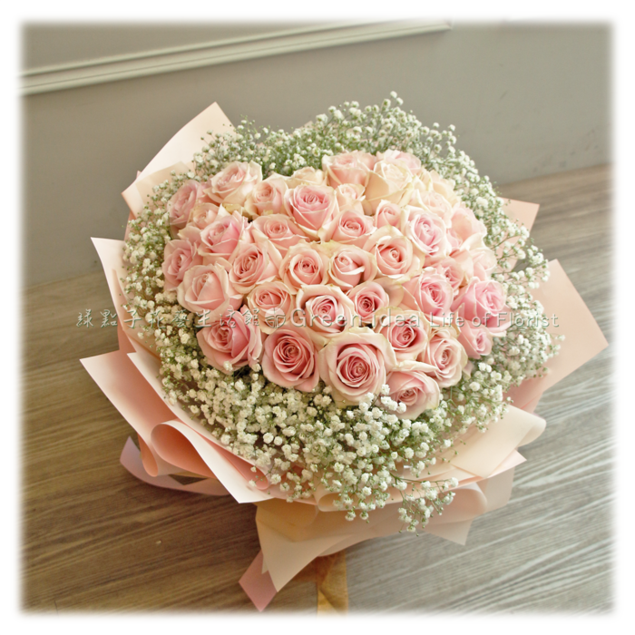 玫瑰花、滿天星。