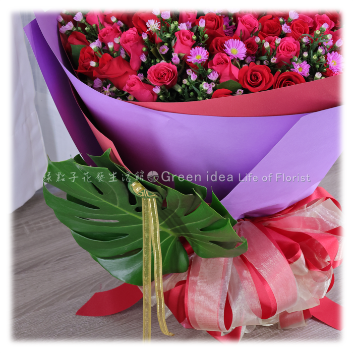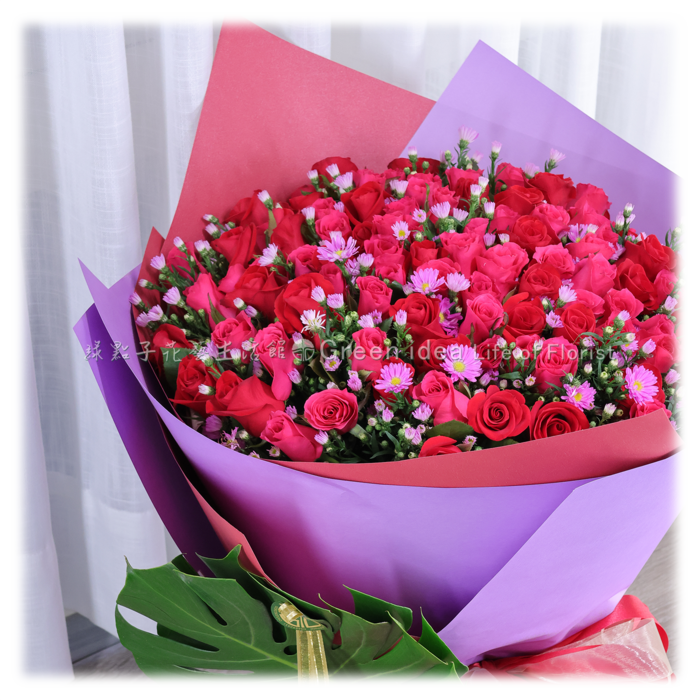 I106 喜氣紅桃紫九九玫瑰花束