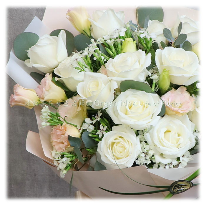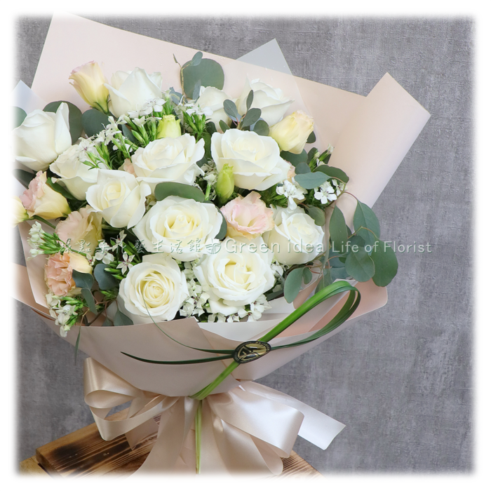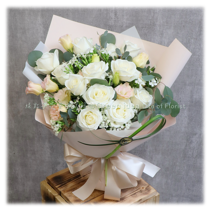 D114 純潔白淡雅玫瑰花束
