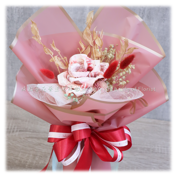*沒有破壞鈔票本體,打開來後都能使用,但做成花束觀賞價值比較高,沒有預設會把它拆開使用。