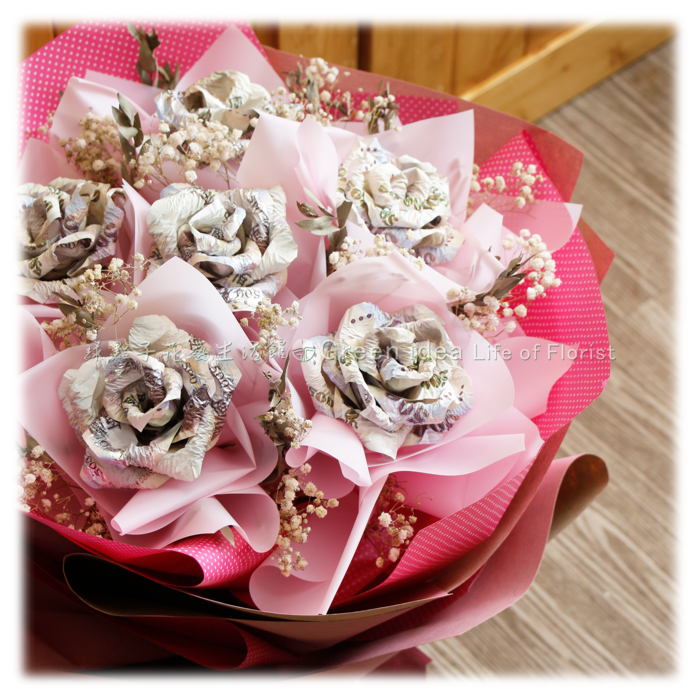*沒有破壞鈔票本體,打開來後都能使用,但做成花束觀賞價值比較高,沒有預設會把它拆開使用。