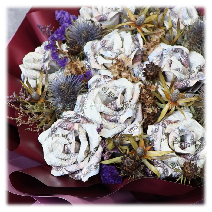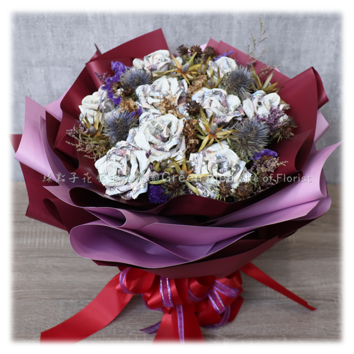 H108 浪漫紅紫五百元金錢玫瑰花束