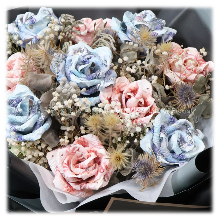 *沒有破壞鈔票本體,打開來後都能使用,但做成花束觀賞價值比較高,沒有預設會把它拆開使用。