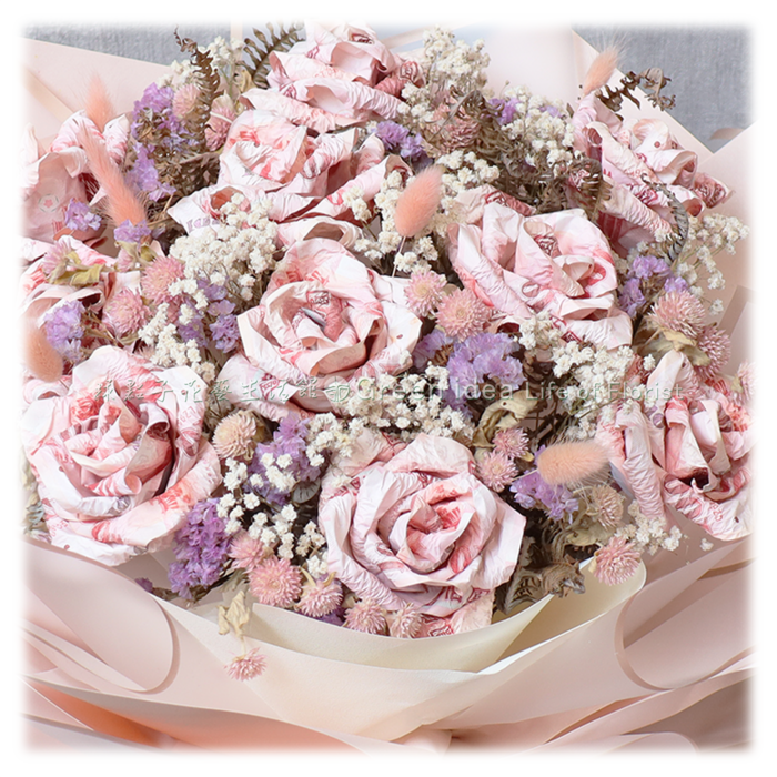 *沒有破壞鈔票本體,打開來後都能使用,但做成花束觀賞價值比較高,沒有預設會把它拆開使用。