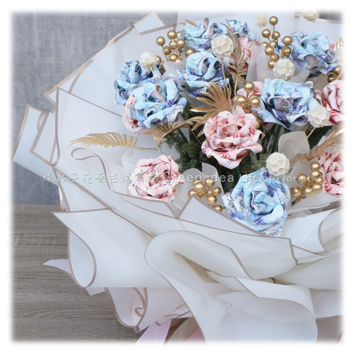 *沒有破壞鈔票本體,打開來後都能使用,但做成花束觀賞價值比較高,沒有預設會把它拆開使用。