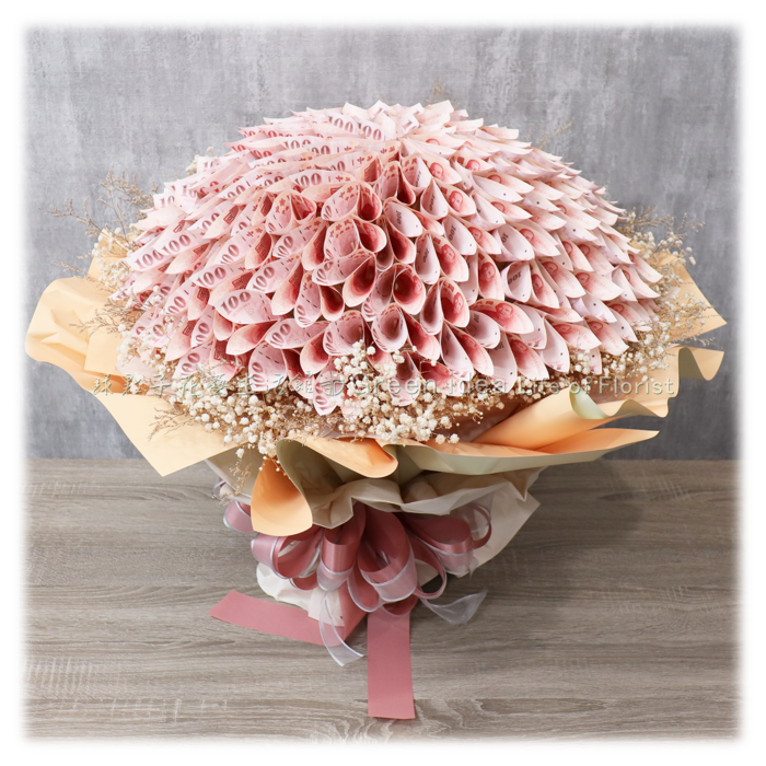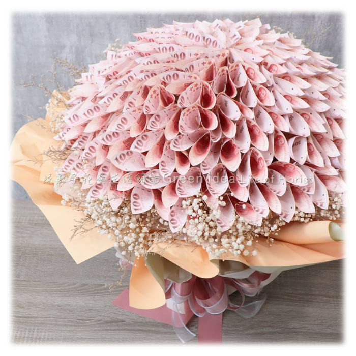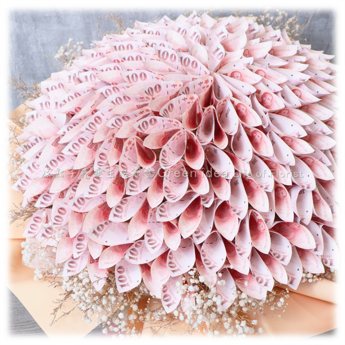 百元鈔168張、滿天星、乾燥花材。