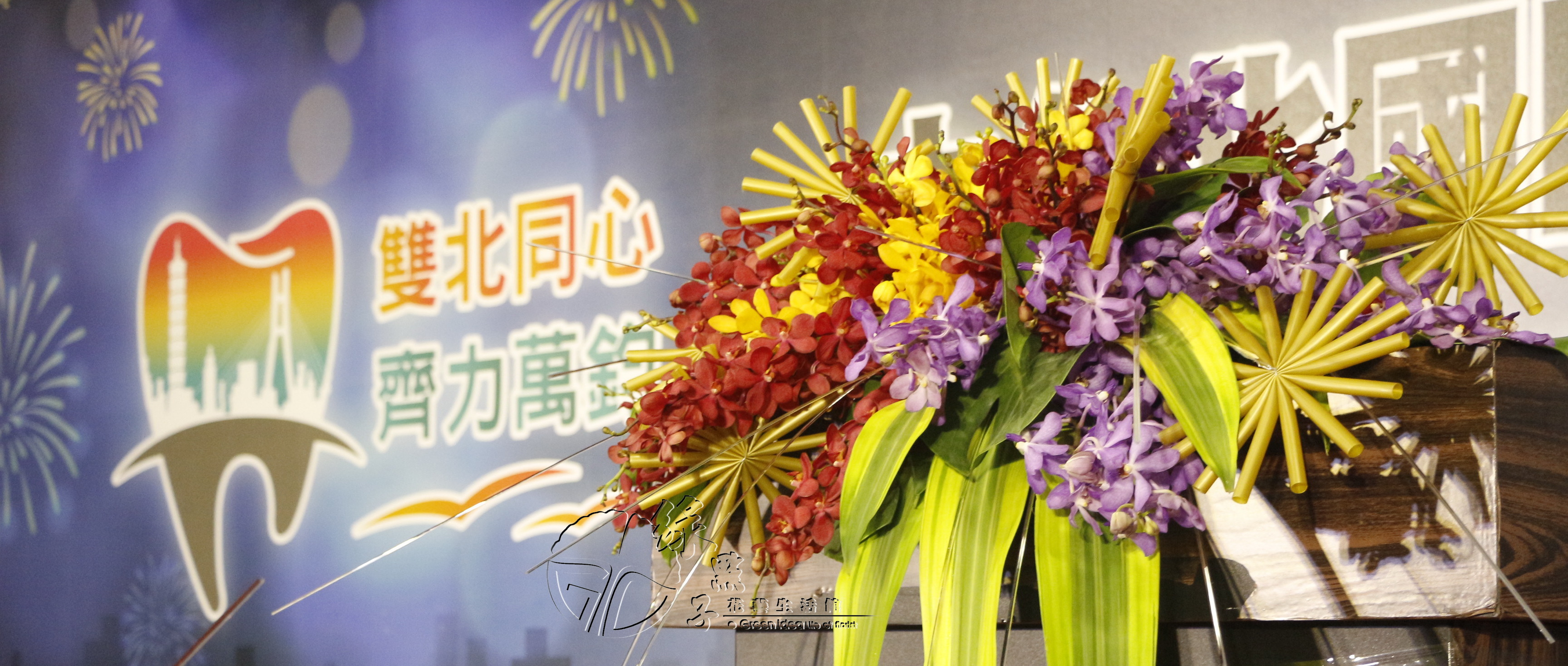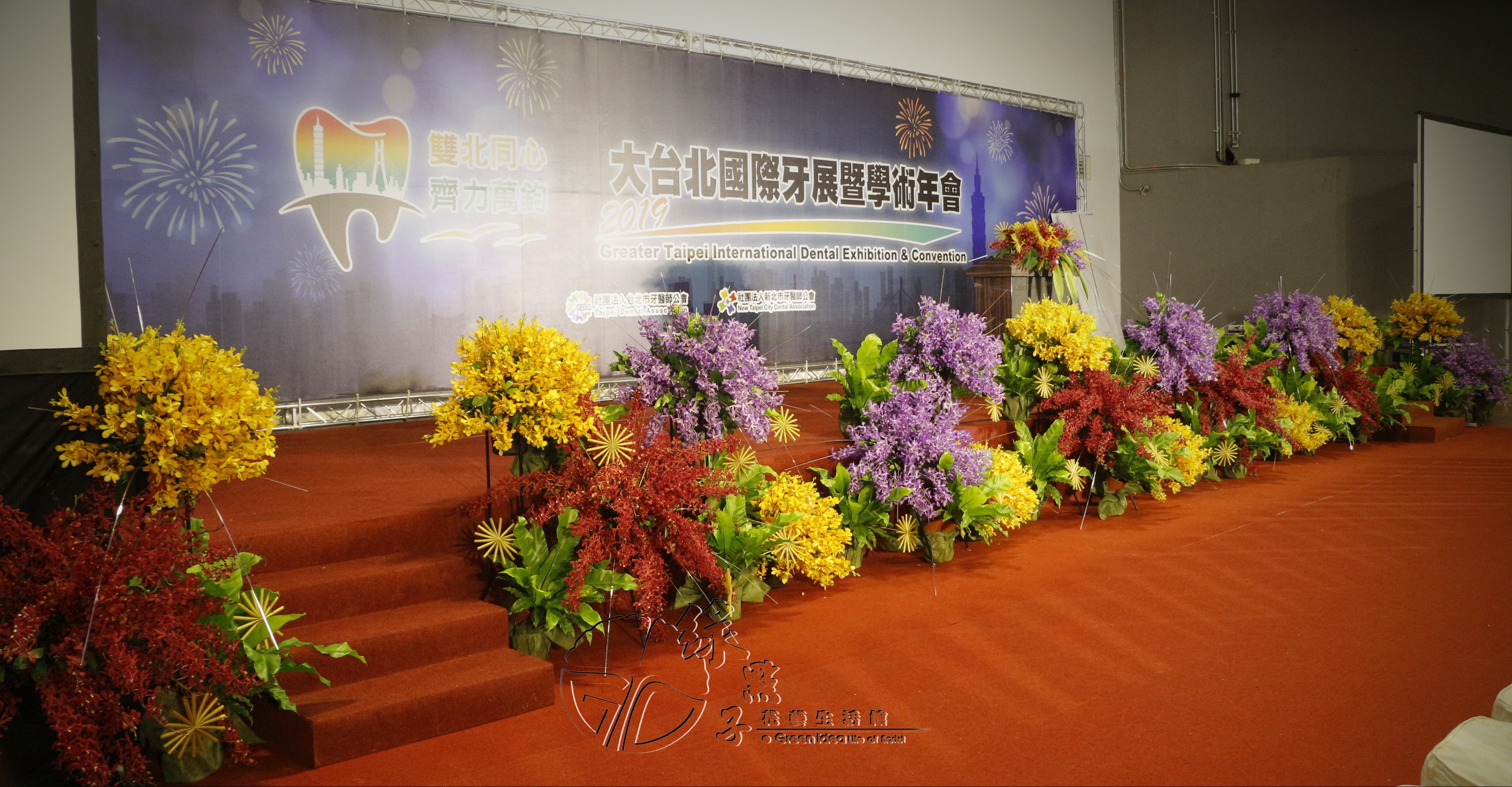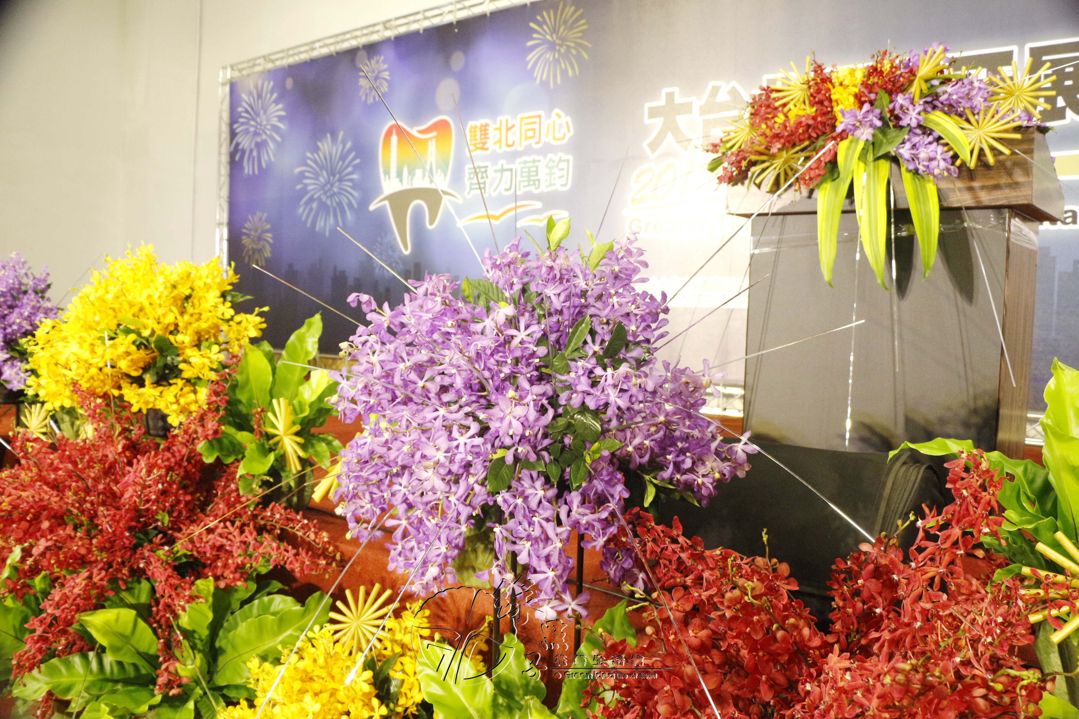最後到主場的講台邊,密集錦簇的花團象徵了大會的共相盛舉與成功