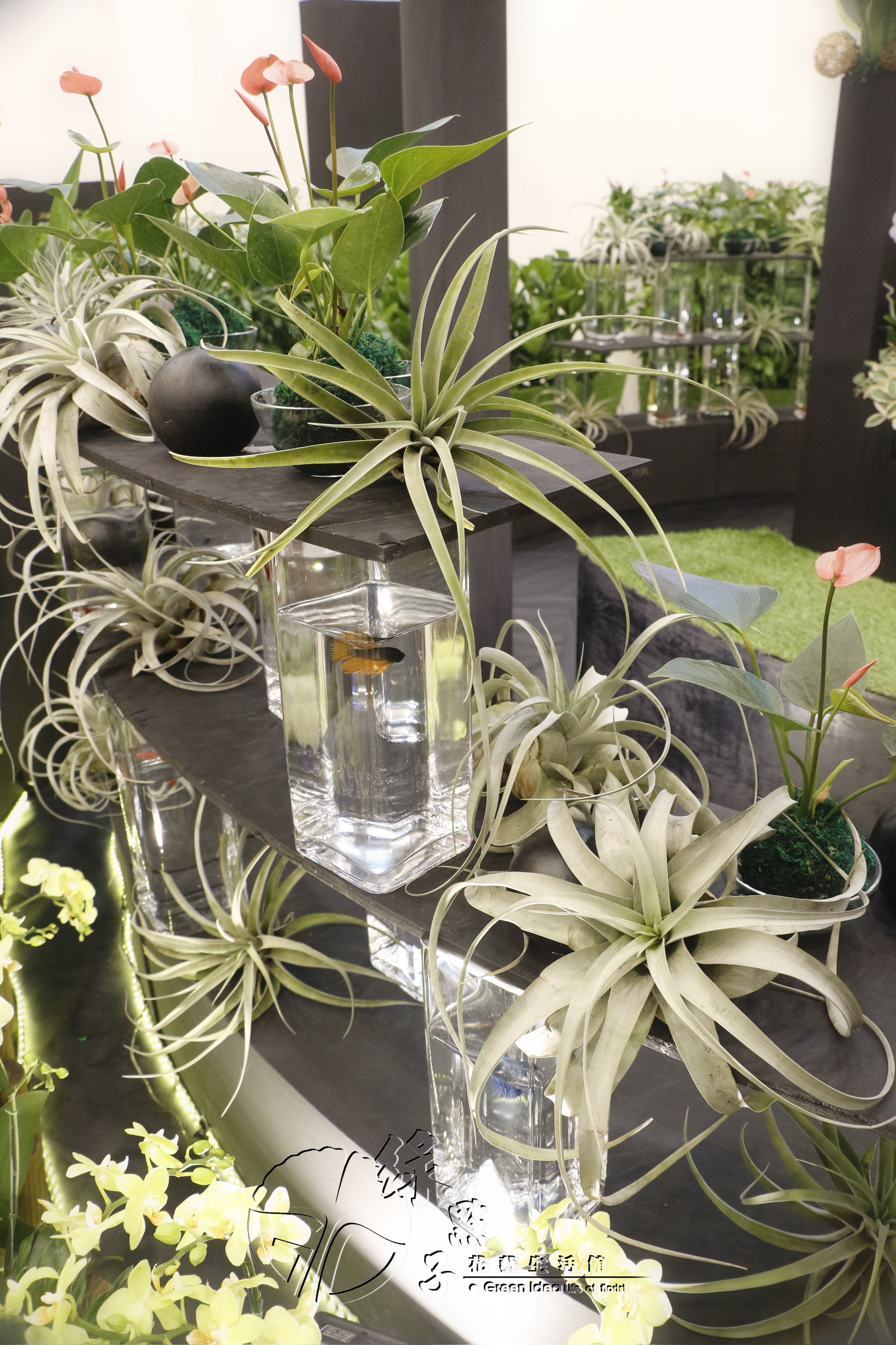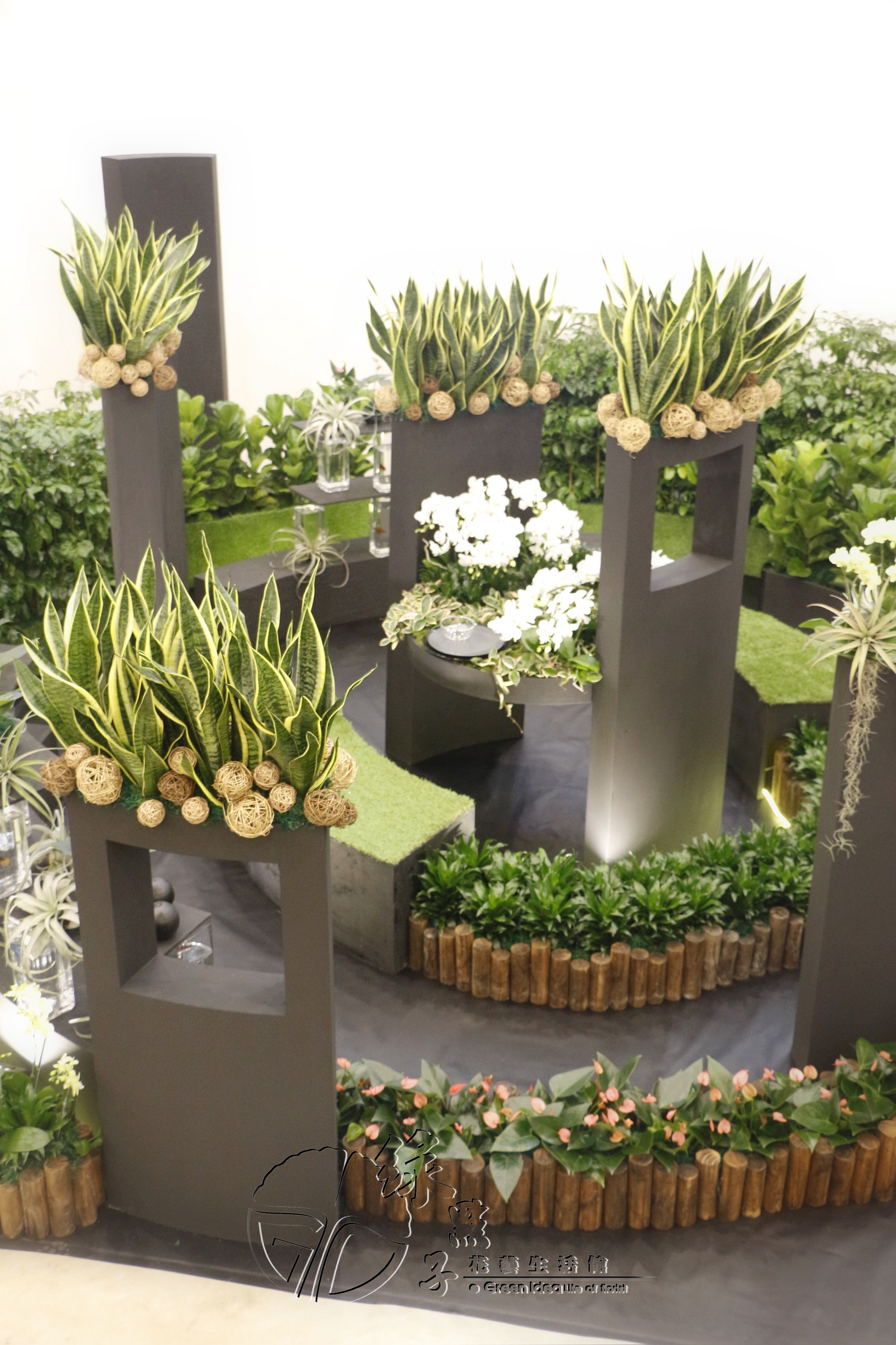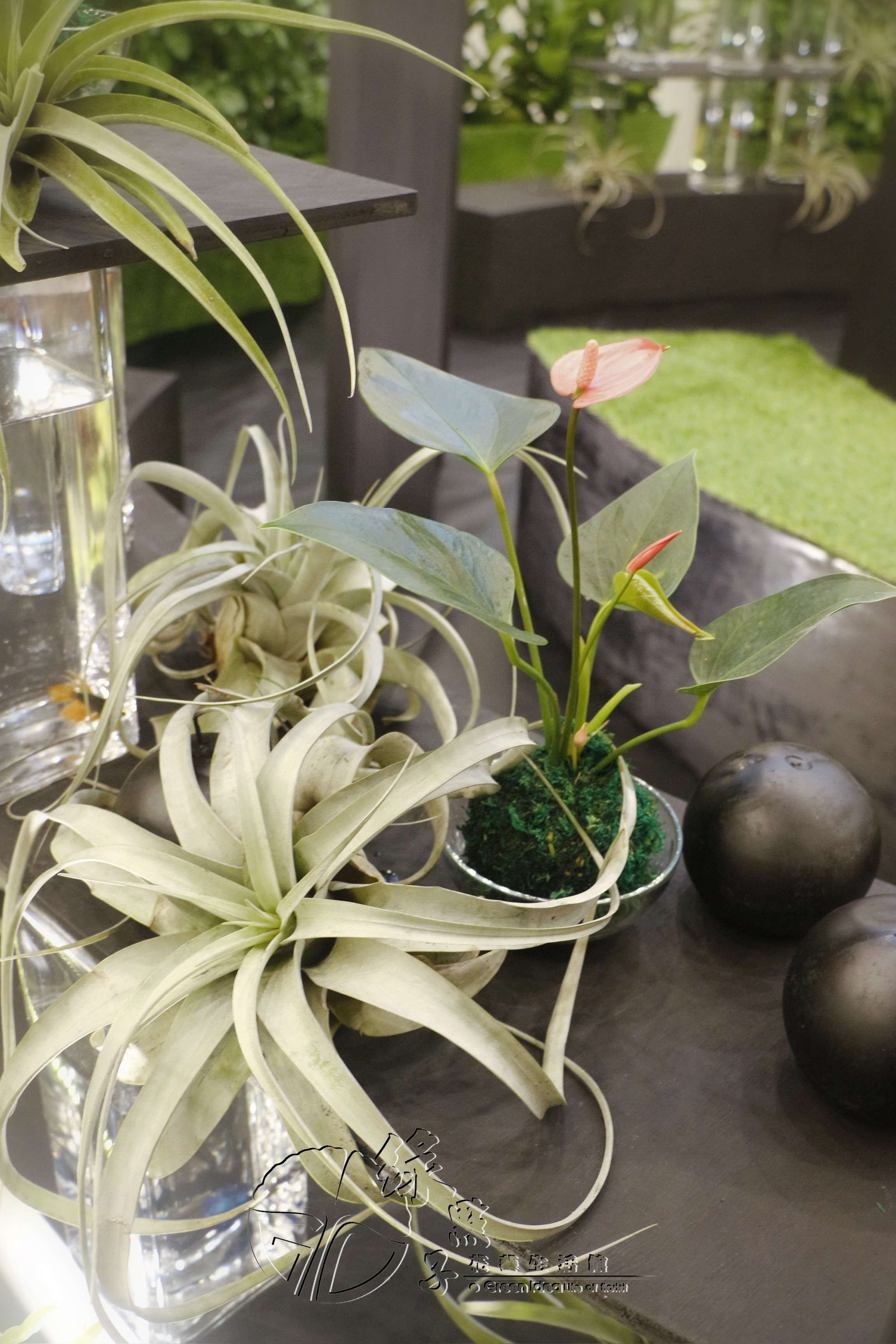 花材運用了可清淨室內環境的虎尾蘭及阿波羅千年木